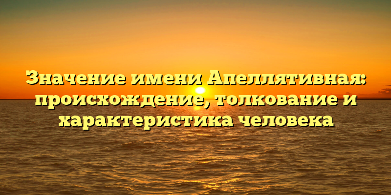 Апеллятивное имя — это общее название, которое сообщает о единстве чего-то. Это отличается от имени, назначенного человеку, которое концентрирует на себе индивидуальность. Многие из нас имеют апеллятивные имена и не задумываются об их происхождении, но каждое имя имеет свое уникальное значение и характеристику человека, связанную с этим именем.