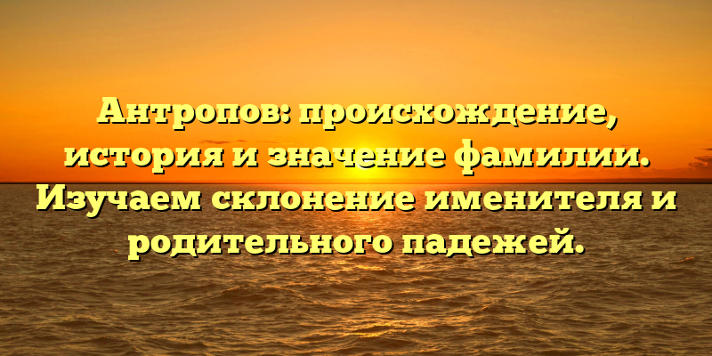 Эта статья поможет узнать больше о происхождении и истории фамилии Антропов, а также изучить правильное склонение именительного и родительного падежей.