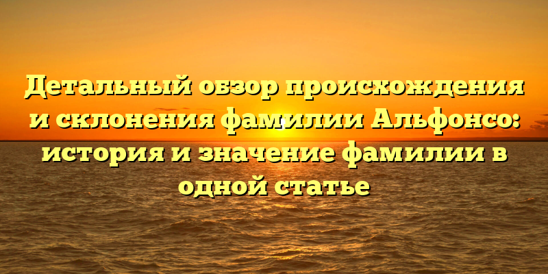 В этой статье мы рассмотрим все аспекты происхождения и склонения фамилии Альфонсо, и расскажем о ее значении и истории. Вам будет интересно узнать о том, как эта фамилия стала такой распространенной, и какие традиции и обычаи связаны с ней. Мы дадим вам полный обзор этой замечательной фамилии, который поможет вам лучше понимать историю Испании и ее культуру.