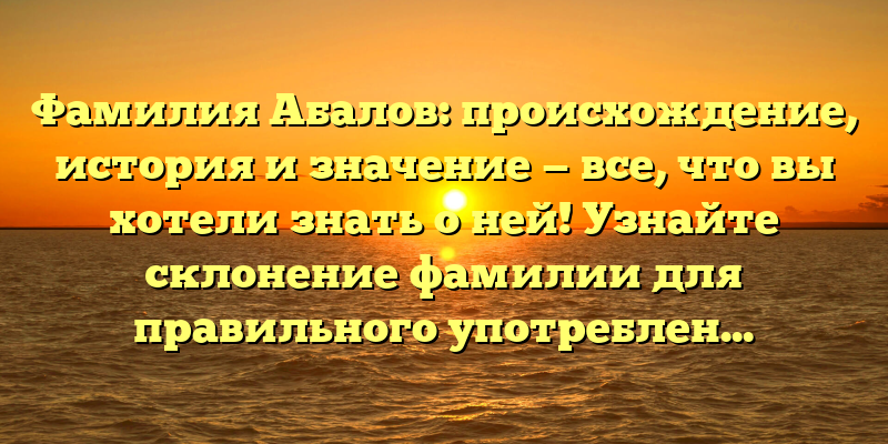 - Раскрываем тайны фамилии Абалов: история, происхождение и секреты правильного склонения для употребления