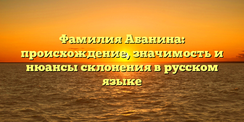 - Фамилия Абанина: происхождение, значимость и нюансы склонения в русском языке