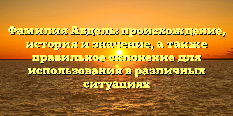 - Фамилия Абдель: происхождение, история и значение, а также правильное склонение в использовании: полный гайд