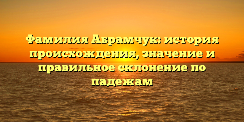 Фамилия — это не только наша личность и история, но также и кусочек нашей культуры. Каждая фамилия имеет свойственную историю, которая включает в себя не только происхождение, но также и значение и правильное склонение по падежам. Одной из таких фамилий является Абрамчук, которая также имеет свою уникальную историю.