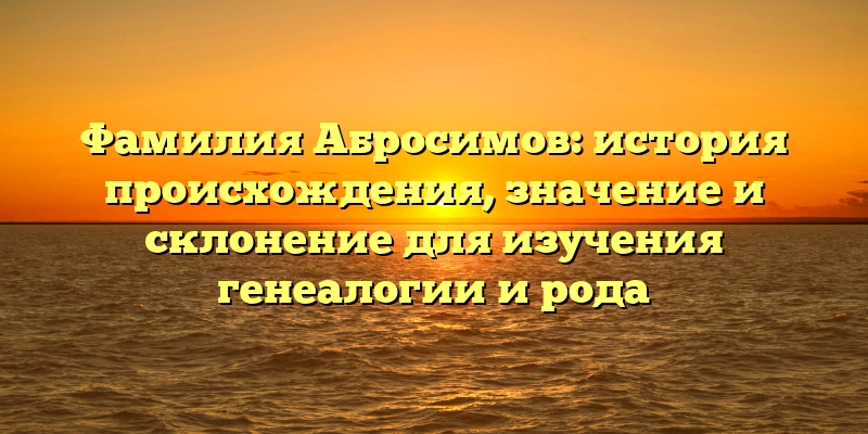 - Фамилия Абросимов: происхождение, значение и склонение – ключевые факты для изучения генеалогии и рода
