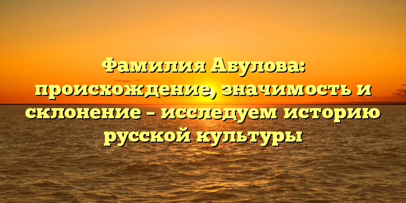 Российская культурная квестия: Исследуем происхождение, значимость и склонение фамилии Абулова