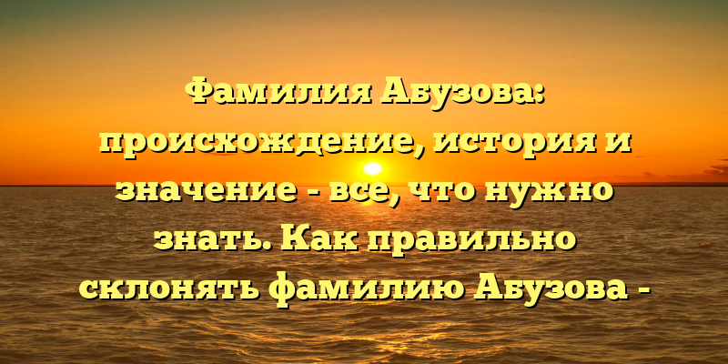 - Исследование фамилии Абузова: происхождение, история и значение, а также руководство по правильному склонению для новичков