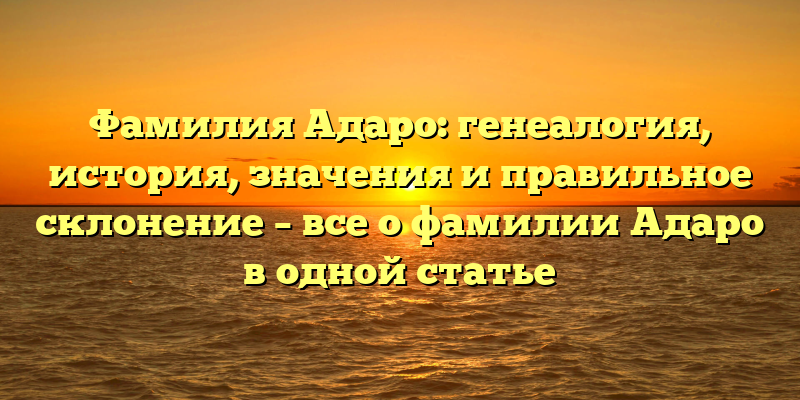 Тайны фамилии Адаро: разбираем генеалогию, историю и значения, а также узнаем правильное склонение в нашей обзорной статье.