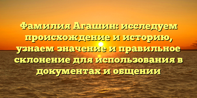 - Фамилия Агашин: происхождение и история, значение и правильные формы склонения для использования в документах и общении