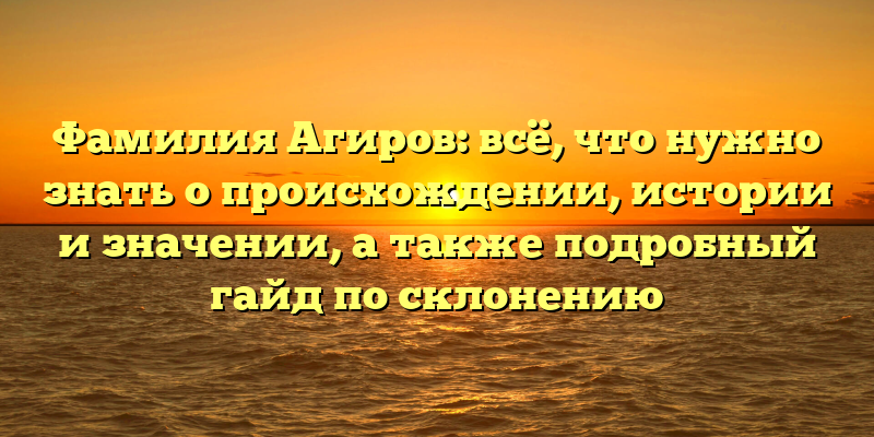 - Фамилия Агиров: история, происхождение и значение, а также склонение — подробный гайд