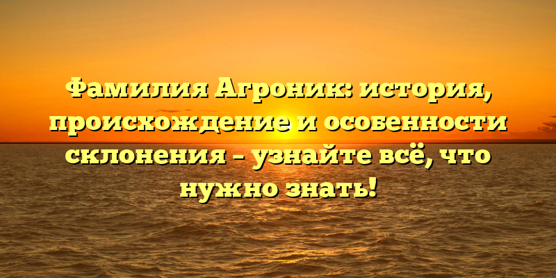 - История и происхождение фамилии Агроник: все, что вы хотели знать о склонении этого имени