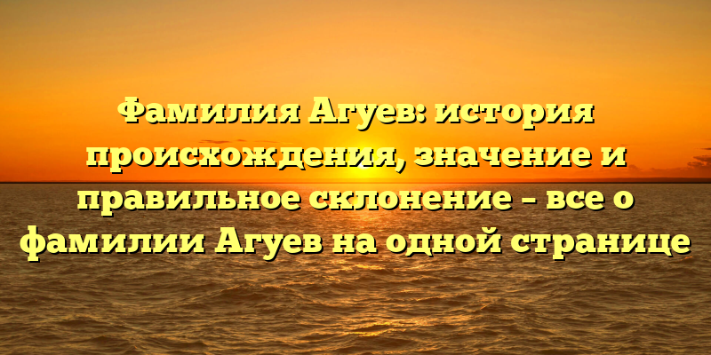 Узнайте все об истории и значениях фамилии Агуев на нашем сайте: правильное склонение и происхождение в одной статье!