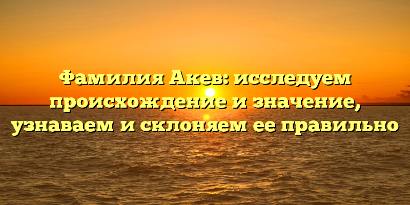 - Фамилия Акев: происхождение, значение и правильное склонение — полный гид для всех исследователей