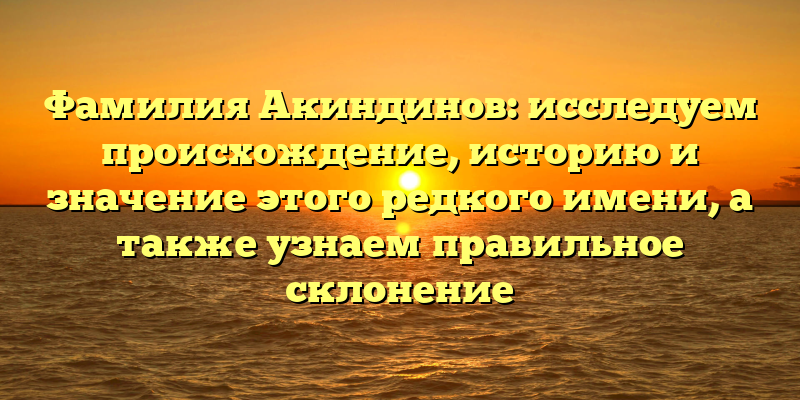 - Фамилия Акиндинов: история, происхождение и значение, а также правильное склонение — все, что вы хотели знать!