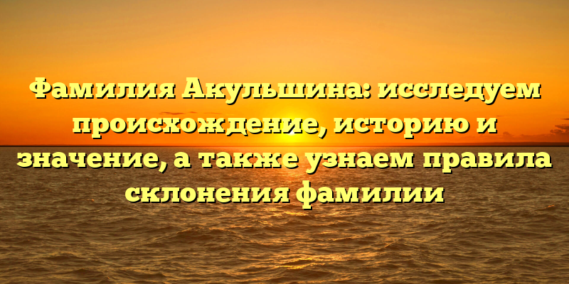 Фамилия Акульшина: происхождение, история и значение, а также все о правилах склонения — отличный SEO-заголовок для данной статьи. Он привлечет внимание пользователей, которые ищут информацию о происхождении и истории фамилий, а также тех, кто хочет узнать, как правильно склонять фамилию Акульшина.