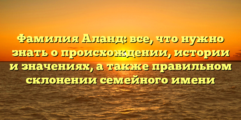 - Фамилия Аланд: исследование происхождения, истории и значений с правильным склонением семейного имени для наследования