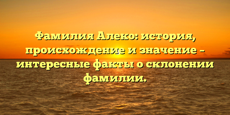 - Фамилия Алеко: история, происхождение и значение — всё, что нужно знать об уникальной фамилии!