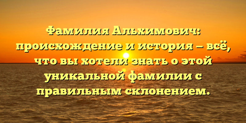 - Фамилия Альхимович: происхождение, история и склонение — заполните пробелы в вашем знании об уникальном родовом имени.