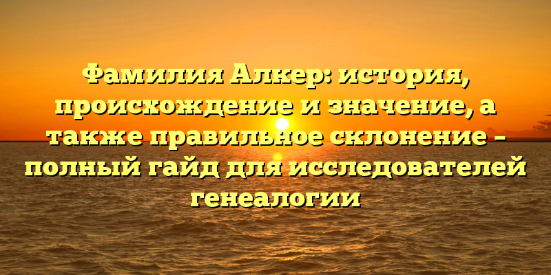 - Фамилия Алкер: происхождение, значение и правильное склонение. Генеалогический гайд для поиска своих корней.