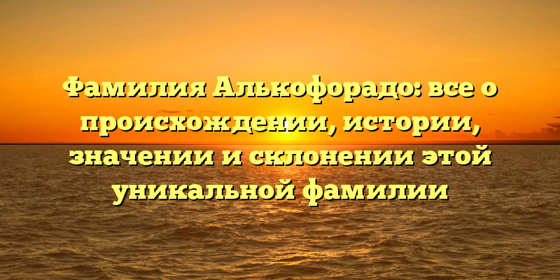 - Фамилия Алькофорадо: тайны происхождения, интересные факты и советы по склонению