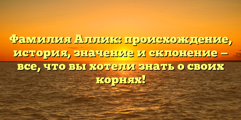 Откройте тайну своих корней: узнайте происхождение, историю и значение фамилии Аллик и ее склонение!