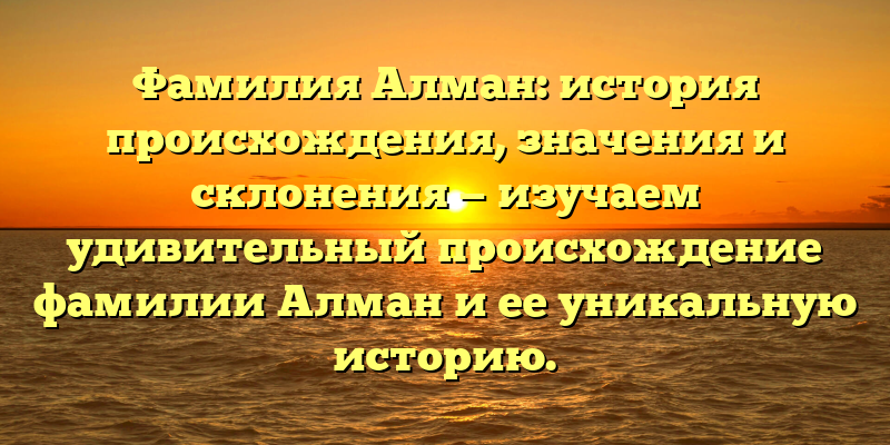 - Погружаемся в историю фамилии Алман: происхождение, значения и склонения