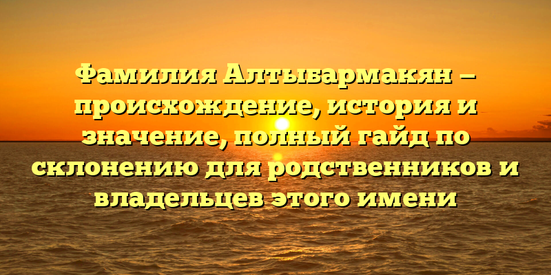 В данной статье мы рассмотрим историю и происхождение фамилии Алтыбармакян, ее значение и социокультурную значимость, а также предоставим полный гайд по склонению для всех родственников и владельцев этого имени.