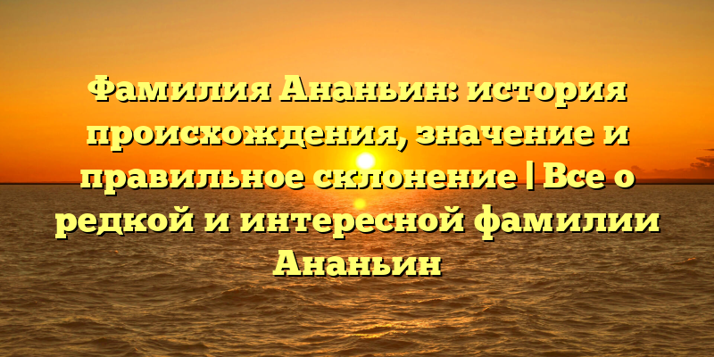 - Фамилия Ананьин: история, значение и правильное склонение. Узнайте все о редкой и интересной фамилии Ананьин