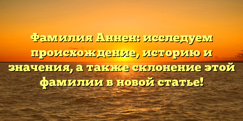 - Открываем тайны фамилии Аннен: происхождение, история, значения и склонение в новой статье!