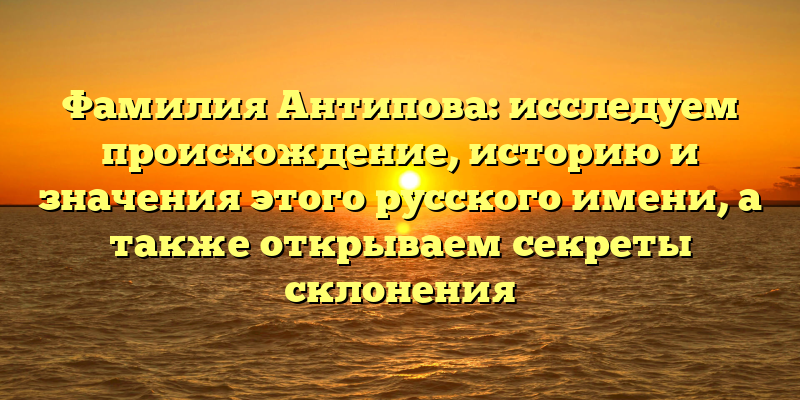 - Фамилия Антипова: истоки, значения и правила склонения — все, что вы хотели знать о русском имени.