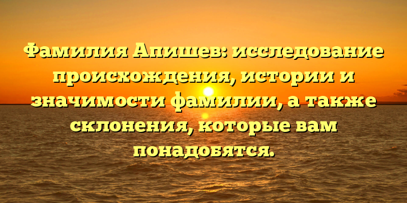 - Открытие тайн происхождения фамилии Апишев: изучение истории и значения, а также полезные склонения для генеалогического исследования.