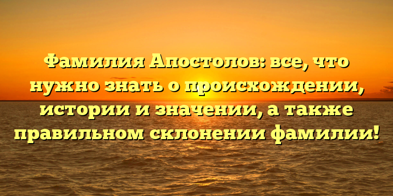 - Исследуем происхождение, историю и значение фамилии Апостолов, а также даем советы по правильному склонению!