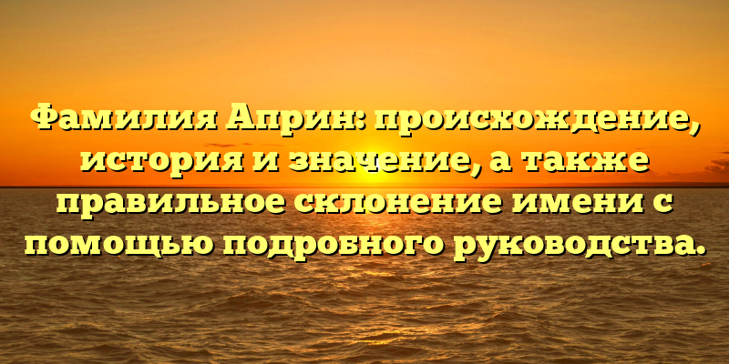 - Исследуйте историю и значения фамилии Априн, а также научитесь правильно склонять имя с нашим подробным руководством!