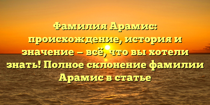 - Раскрываем тайны фамилии Арамис: происхождение, история и значение. Узнайте полное склонение фамилии!