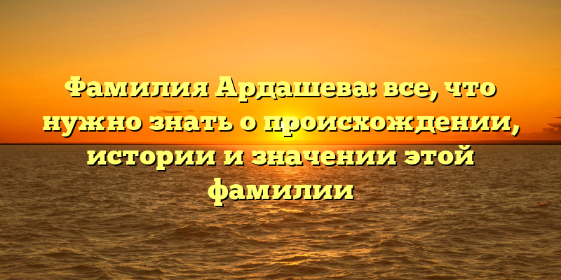 - Исследуем происхождение, историю и значение фамилии Ардашева: интересный обзор для генеалогов и историков
