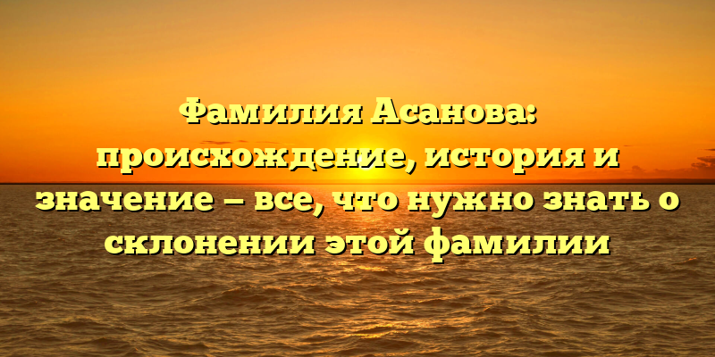 - Фамилия Асанова: происхождение, история и значение — разбираемся в правильном склонении этой фамилии