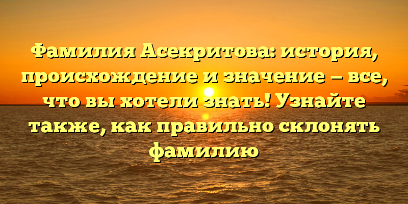 - Фамилия Асекритова: происхождение, значение и правильное склонение — полный гид