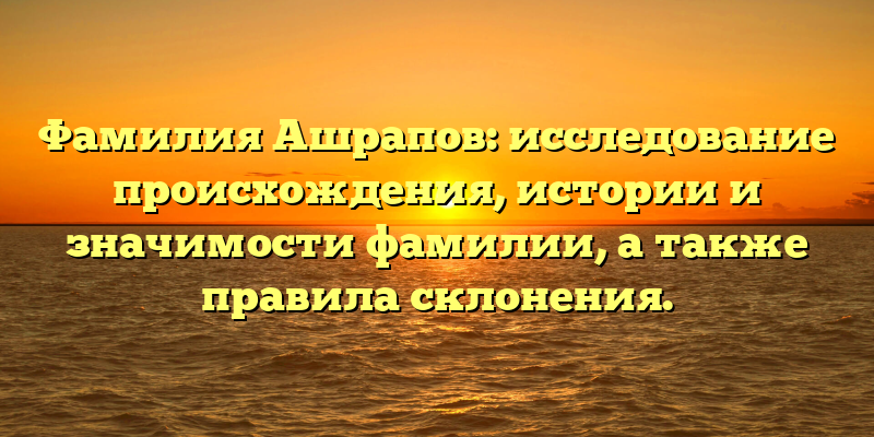 В этой статье мы подробно разберем происхождение, историю и значимость фамилии Ашрапов, а также рассмотрим правила ее склонения.