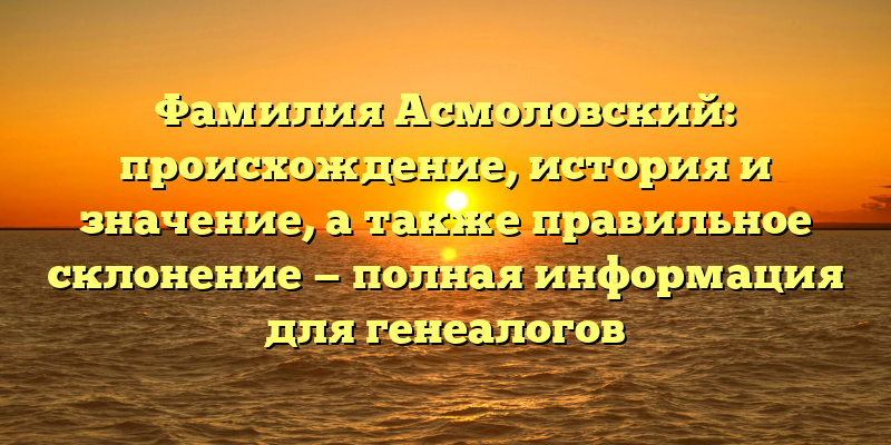 - Исследуйте прошлое: Фамилия Асмоловский — история и значения с правильным склонением для генеалогов