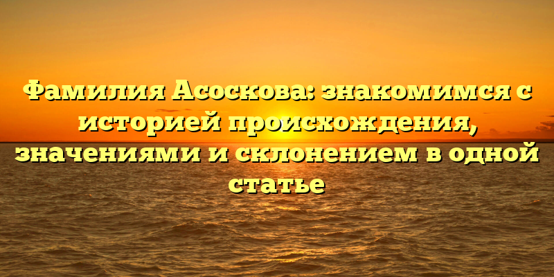 - Исследуем историю происхождения, значение и склонение фамилии Асоскова в одной статье: узнайте все, что вы хотели знать об этом редком русском имени!