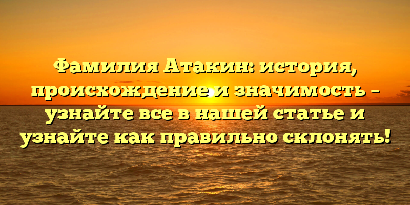 - Фамилия Атакин: происхождение, история и правильное склонение — всё, что нужно знать!