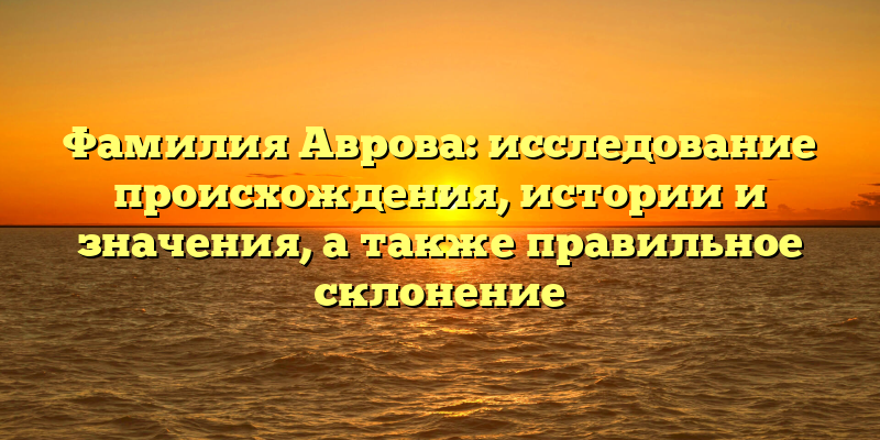 Фамилия Аврова встречается довольно редко, но все же несколько тысяч людей носят ее по всему миру. Несмотря на небольшое количество носителей, эта фамилия привлекает внимание исследователей, которые изучают происхождение и историю фамилий. В данной статье мы рассмотрим историю происхождения фамилии Аврова, ее значения и правильное склонение.
