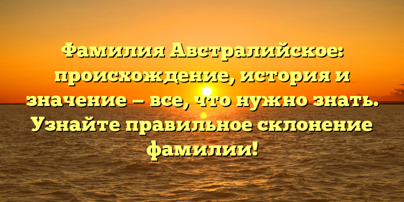 Фамилия Австралийское очень часто встречается в Австралии. Возможно, вы знаете кого-то с этой фамилией или даже сами являетесь ее обладателем. Однако, не все знают, откуда происходит эта фамилия и как ее правильно склонять.