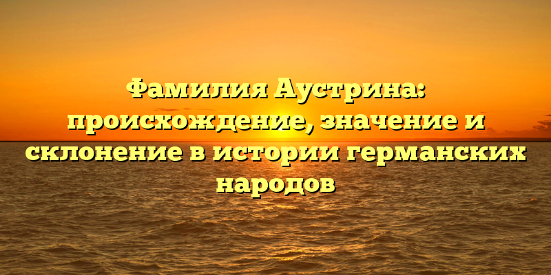 - Загадка Фамилии Аустрина: История Происхождения, Значение и Склонение в Жизни Германских Народов