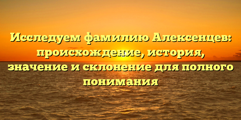 Фамилия Алексенцев является достаточно распространенной в России, но не каждый знает ее происхождение и значение. Исследование фамилии поможет раскрыть многие тайны, связанные с именем.
