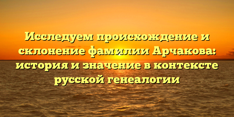 Кроме того, мы рассмотрим склонение фамилии Арчакова в русской генеалогии. Какие правила склонения следует применять в различных грамматических формах? Все это и многое другое мы рассмотрим в данной статье.