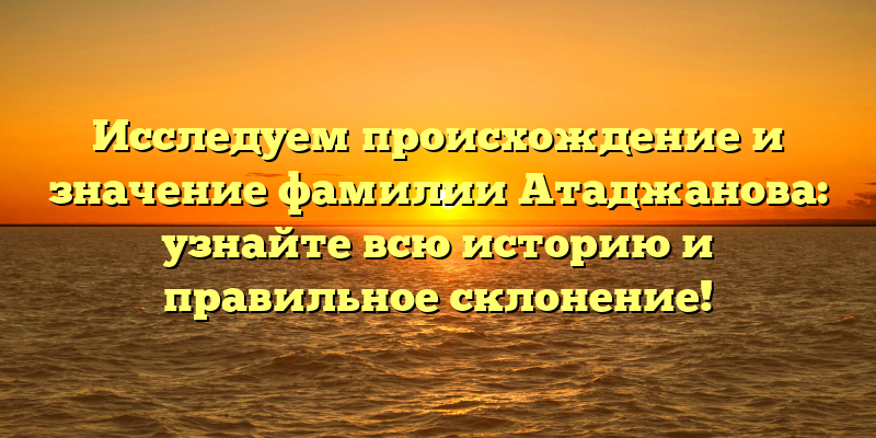 - Раскрываем тайны истории и значения фамилии Атаджанова: правильное склонение и происхождение в одной статье