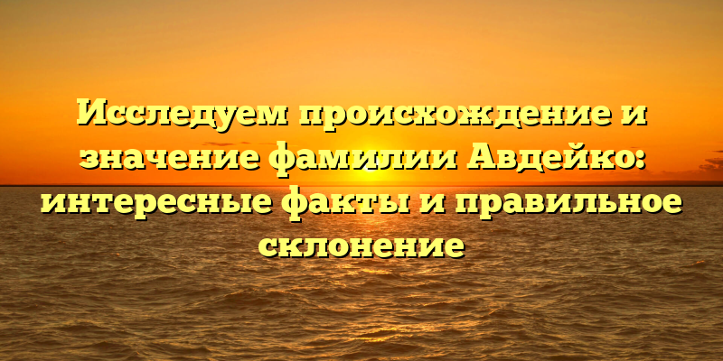 - Фамильный след: история и значения фамилии Авдейко, и все, что нужно знать о ее правильном склонении.