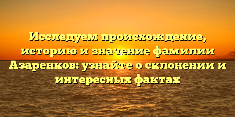 Узнайте все о происхождении, истории и значении фамилии Азаренков: интересные факты и склонение!