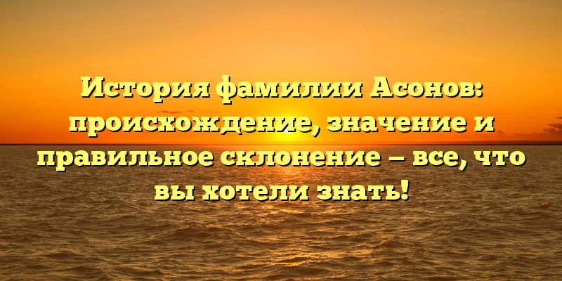 - Полная история фамилии Асонов: происхождение, значение и правила склонения — глубокое погружение в истоки своей родословной