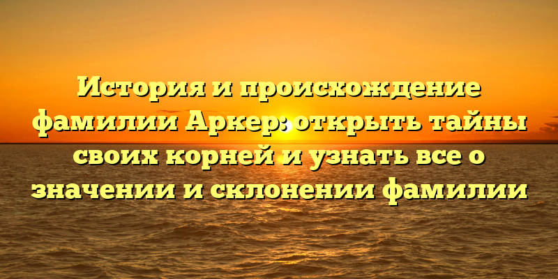 - Исследуйте происхождение фамилии Аркер и раскройте тайны своего происхождения: узнайте все о значениях и склонении этой фамилии в нашей исторической статье